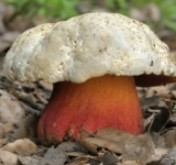 Сатанинский гриб (Boletus satanas) очень ядовитый гриб, мякоть сатанинского гриба сначала постепенно краснеет и потом становится синей.